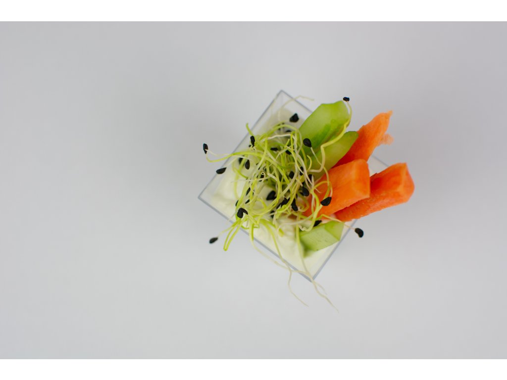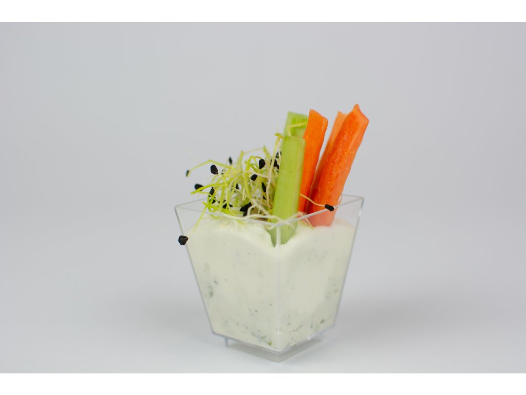 Zeleninové crudités s bylinkovo tvarohovým dipem – MOŽNOST I ČESNEKOVÉ